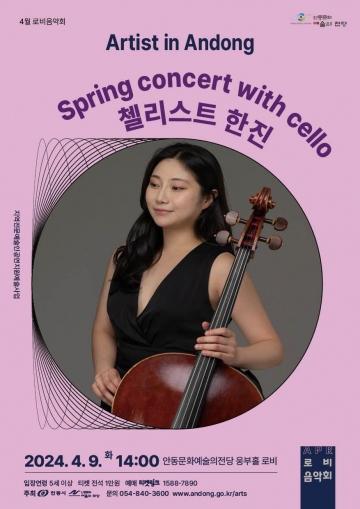 안동문화예술의전당은 지역 전문예술인 공연지원 사업 추진을 위한 2024년 로비음악회 ‘아티스트 인 안동’을, 4월 9일부터 11월 5일까지 매월 첫째 주 화요일 오후 2시에 웅부홀 로비에서 진행한다.