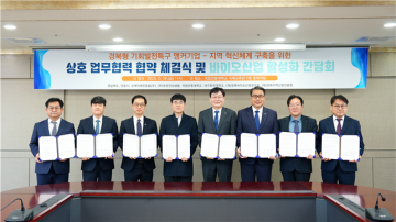 이번 MOU는 산업통상자원부에서 지원하는‘중견기업-지역 혁신 얼라이언스 지원사업’의 수행을 도모하고자 마련했으며, 관련 행사는 지난 28일 국립안동대학교 국제교류관에서 진행했다.