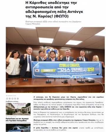 시 대표단은 먼저 자매도시인 그리스 코린트시를 방문해 시장 접견 및 기자간담회를 갖고 양 도시의 주요 산업인 관광과 농업에 대한 실질적 교류방안에 대해 심도 있는 논의를 진행했다. 이어 대학․상공회의소․무역협회 등 시 주요 관계자들과의 간담회를 통해 도시 간 환경을 이해하고 상호 협력을 위한 현안을 공유하기도 했다.
