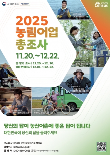 안동시는 오는 11월 20일부터 12월 22일까지 전국적으로 시행되는 ‘2025 농림어업총조사’를 실시한다.