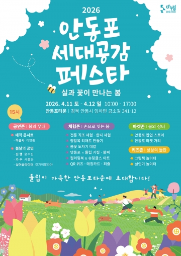 안동시 안동포타운은 오는 11일(토)과 12일(일) 이틀간 임하면 금소리 안동포타운 일원에서 ‘안동포세대공감페스타’를 개최한다. 이번 행사는 ‘실과 꽃이 만나는 봄’을 주제로, 우리나라 전통 섬유인 안동포의 가치를 재조명하고 모든 세대가 함께 즐길 수 있는 복합 문화 체험의 장으로 꾸며진다.