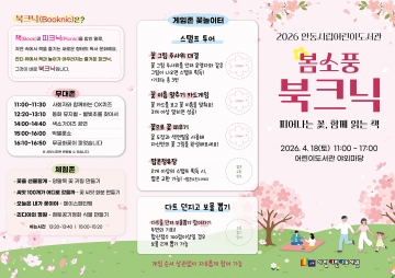 안동시립어린이도서관에서는 오는 18일 11시부터 17시까지 시민이 도서관에서 마음껏 봄놀이를 할 수 있는「북크닉(book+picnic)」행사를 개최한다.