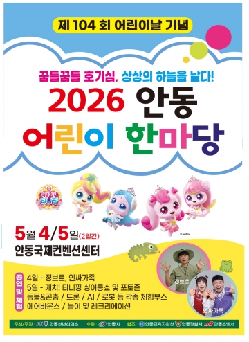 안동시와 안동청년회의소(회장 박주하)는 제104회 어린이날을 맞아, 5월 4일부터 5월 5일까지 이틀간 안동국제컨벤션센터에서 ‘2026 안동 어린이 한마당’을 개최한다고 밝혔다.